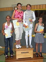 Bei den Damen wurde Tina Weber (B-Jugend) zum zweiten Mal in Folge Doppelmeisterin mit dem Degen und dem Florett. Hier wurde Saskia Fajkus Vizemeisterin. Bei den Schülerinnen (1994) stand Jessica Jahn gleich dreimal ganz oben auf dem Treppchen: mit dem Florett, dem Degen und der Mannschaft (gemeinsam mit Lara Santak und Rosa Hinzpeter). Bei den Florett- und Degen-Einzelkämpfen dieses Jahrgangs belegten Santak und Hinzpeter jeweils den zweiten und dritten Platz. |