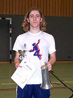 Nach einem neuerlichen 15:8 gegen Konstantin Heidenreich, folgte der einzige knappe Sieg gegen Jan Christoph (Donauwörth) mit 15:14. Das Finale lief dann wieder ganz nach Martins Geschmack, und er konnte Tim Drescher (Schweinfurt), immerhin Zweiter der bayerischen Rangliste, nach Belieben dominieren und siegte 15:8. |