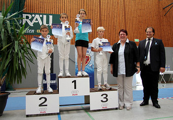 (Foto rechts) erhält die Urkunde für den Gewinn der Bavarian Open und ihre Meistertitel beim Fechten