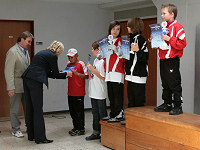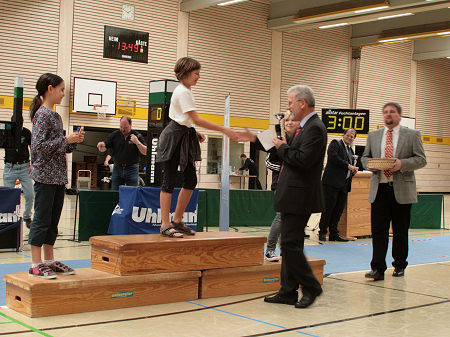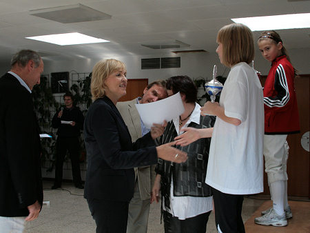 | Bei der Siegerehrung | Ein kleines Lebkuchenherz für die Siegerinnen | Frau Dr. Beate Merk überreicht die Pokale |