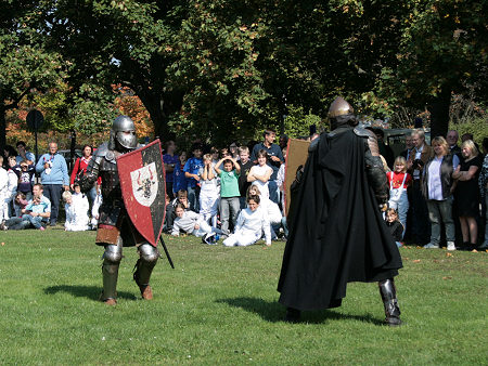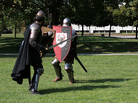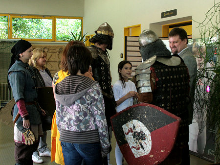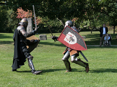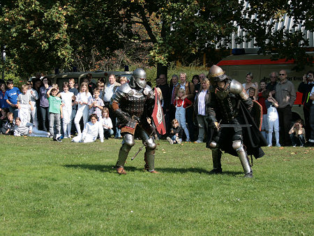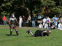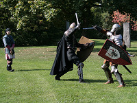 | Nun wird es schaurig! Die Mittelalter-Schaukampftruppe "Gemini Fratres" betritt die Halle! | |||