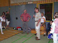 | Das Turnier beginnt.... Begrüßung durch den Abteilungsleiter R. Oed und den 2. Vorstand H. Bentele | |||